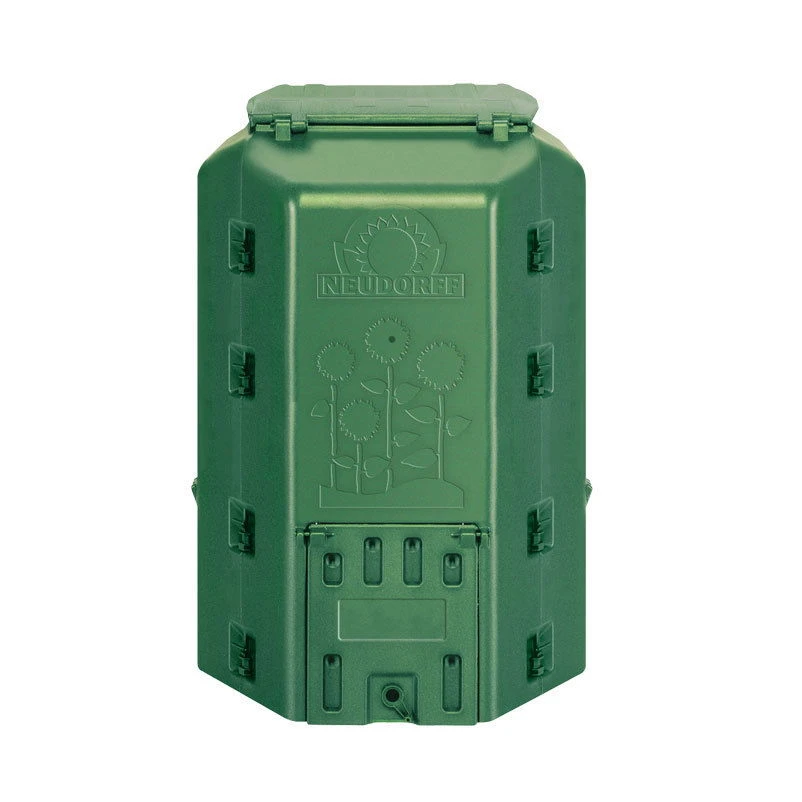 Der Thermo Komposter „Duo Therm“ von Neudorff ermöglicht durch die hochwertige, doppelwandige Konstruktion eine hervorragende Wärmedämmung und erstklassigen Kompost. Das Kompostsilo wurde speziell für mittlere bis große Hausgärten konzipiert und besteht aus hochwertigem, stabilem und wetterfestem Recyclingkunststoff. Durch das einfache Stecksystem ist der Neudorff Thermo-Komposter im Handumdrehen aufgebaut und einsatzbereit.
